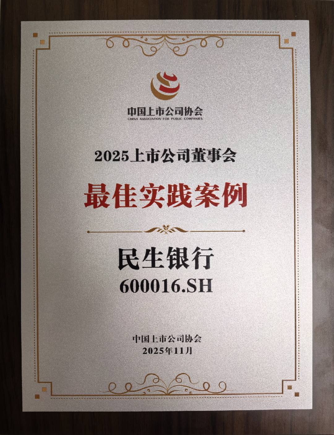 民生銀行榮獲“2025上市公司董事會最佳實踐案例”榮譽,是對我行積極踐行現代公司治理理念、持續加強董事會建設、不斷深化投資者溝通等諸多工作的充分認可。
